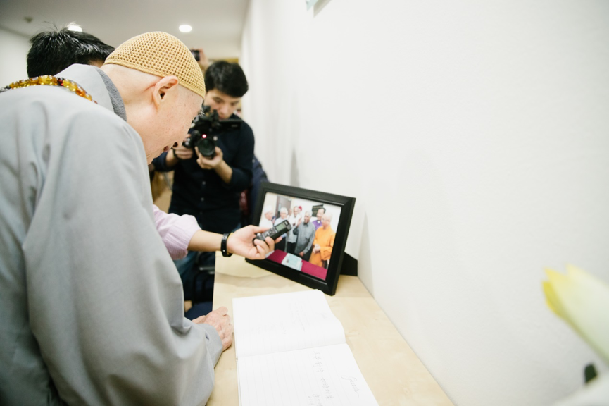 ▲哈比哈山長老和淨空老教授共同指向老教授照片顯示之處。兩位智者似乎在為我們指明了未來和諧之路的構建方式:通過倫理、道德、因果、聖賢的教育,轉化人心、實現世界永續和平。