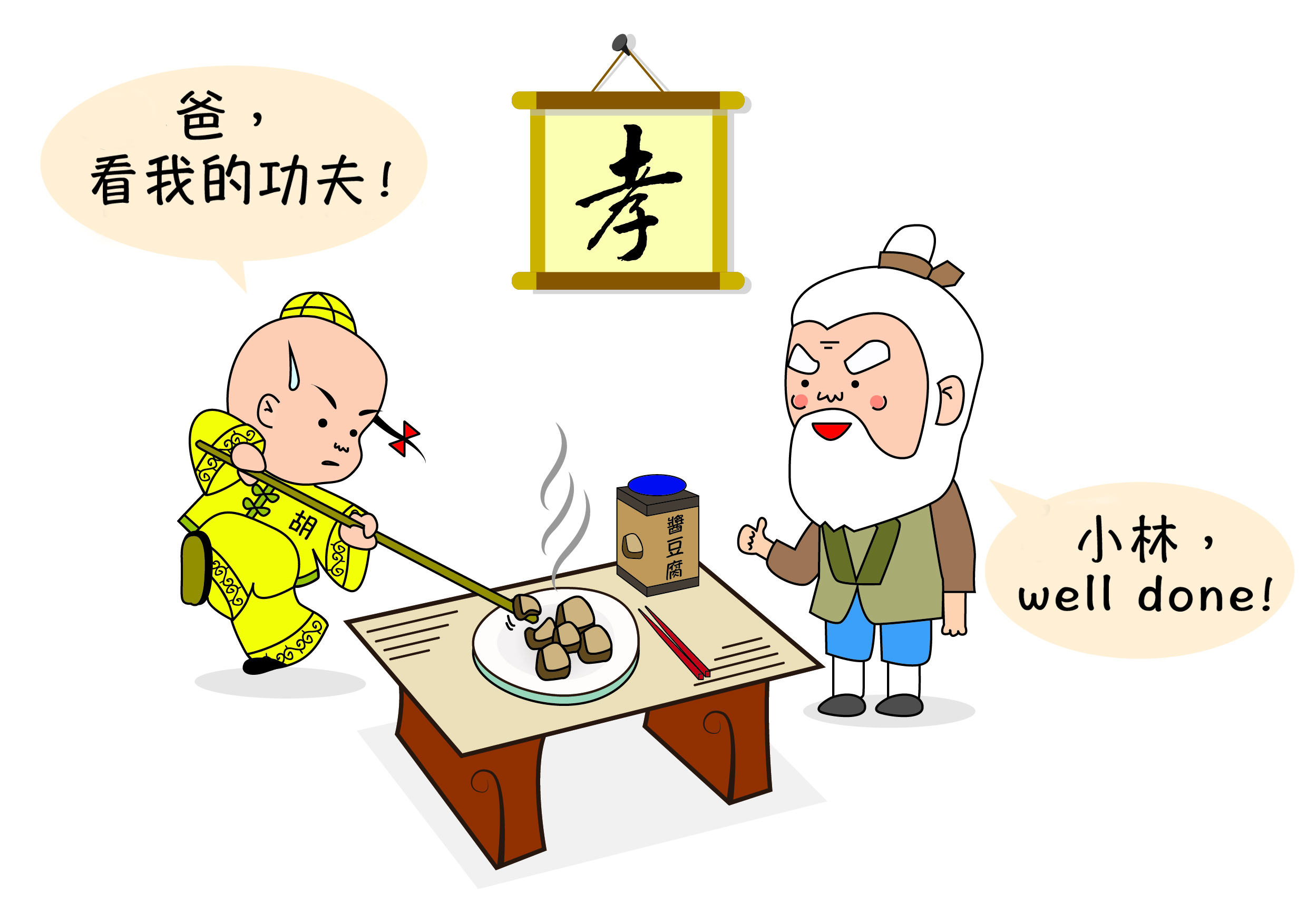 第二天再回去,我就說:「行了,爸。從今天開始,這個醬豆腐我來喂您,您別夾了。」 醬豆腐夾起來了,我就抹在爸爸的筷子上——讓他用筷子弄,麻煩!你想醬豆腐本來就一個火柴頭那麼大,你抹上去又抹下來得半天。我說得了,乾脆直捷就送到我爸的嘴裡,送進去之後我爸特高興。但是,我這雙筷子再夾菜放到自己嘴裡的時候,我就覺得硌硬。